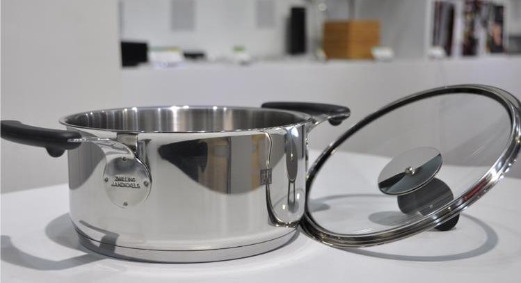 锅具手柄为航空器操纵杆形状,用很小力气就能提起锅子。手柄与锅身的间距科学设定,避免热辐射烫手,