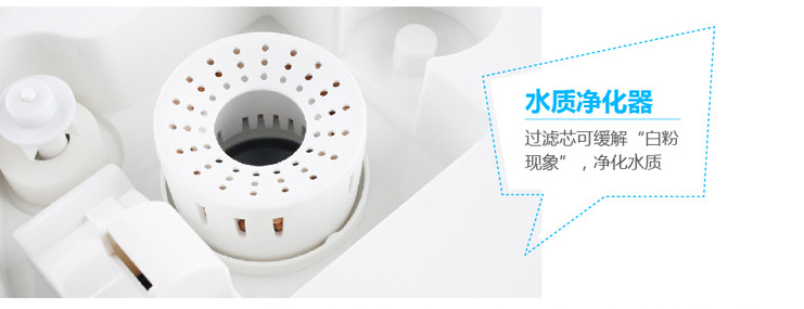 电子触控设计,智能加湿 超大2.5L水箱,每小时最大400ML出雾量,高效能润养 先进水净化系统,水质净化,加湿更健康 LED水箱指示灯,美轮美奂,可当夜灯使用。 缺水自动断电,使用更安全 可调节雾量设计,雾量大小自由选择