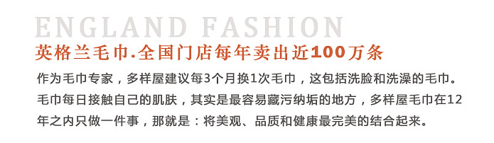 沐浴后披裹在身上,舒适惬意;柔软护肤:高度的柔软性,可避免因过度摩擦而导致皮肤老化;毛质蓬松:特殊的产品结果,使产品清洗后变得更加饱满柔软;厚实质感:厚实的面料使毛巾的使用寿命更长,性价比也更高;高吸水性:吸水性是普通毛巾的2-3倍,而透气性则更加优异;色泽饱满:漂亮饱满的色泽结合完美的工艺,使用后不会掉色;去污力强:特殊的横断面更能有效的捕获尘埃 ,去污效果明显;健康环保:采用天然无污染的环保染剂,无毒无害,使用放心